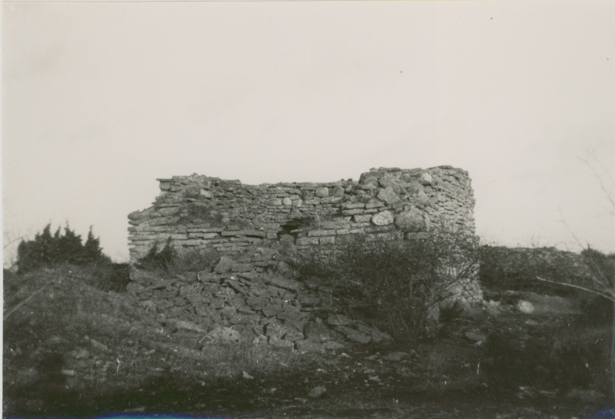 Nybyugnen från sydost. Närmast står de nedrasade partierna av kalkugnen. Jämför karta