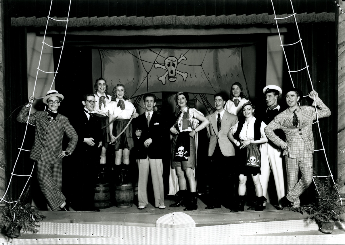 Scen ur revyn "PÅ KRYSS MED BEATA" år 1943 i I.O.G.T.-lokalen, Strömg., Kalmar.