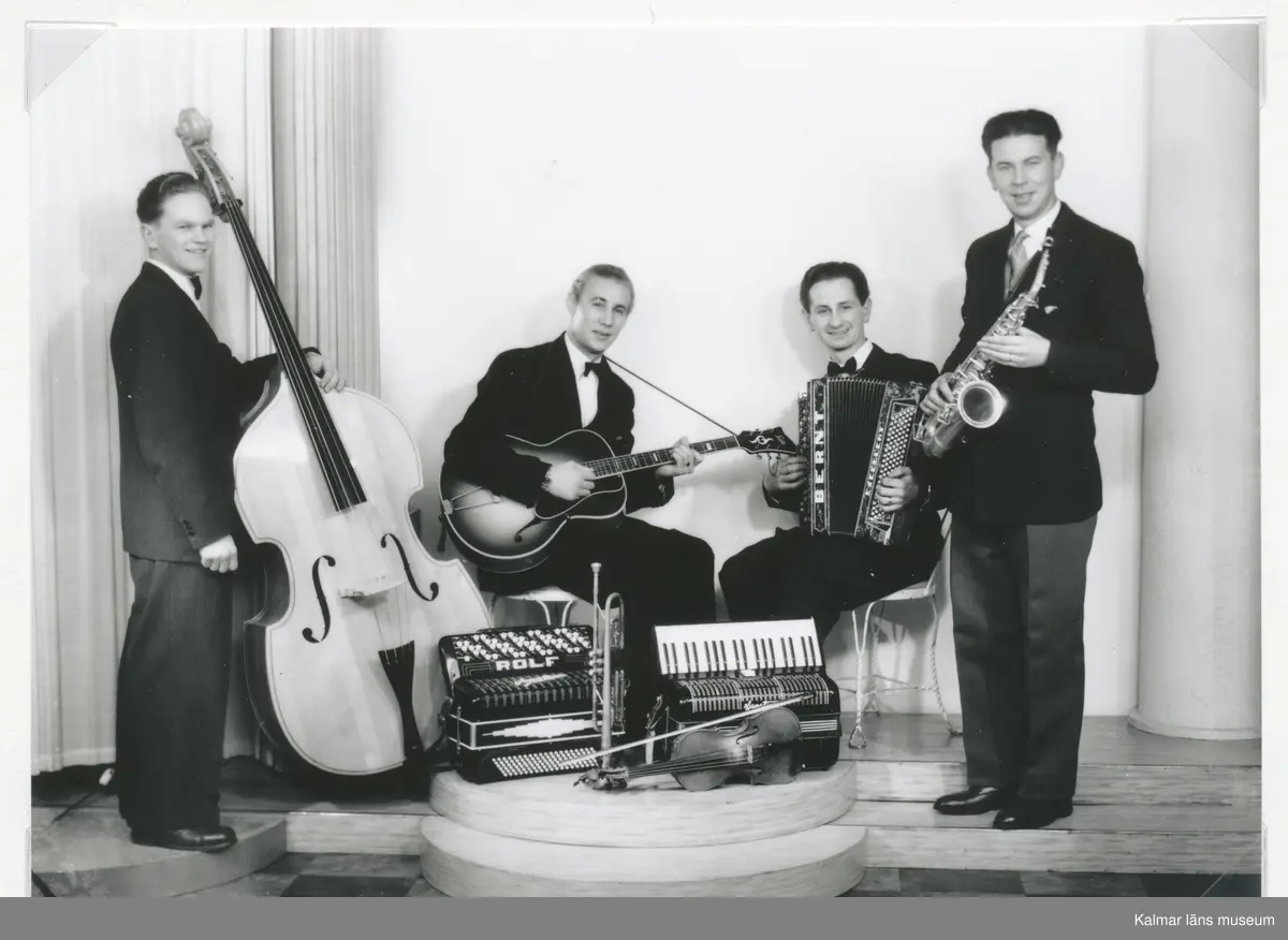 Ingvar Aspelins kvartett. Från vänster: Ingemar Bennich-Björkman - kontrabas, Rolf Larsson - gitarr - dragspel - banjo, Ingvar Aspelin - Altsax.