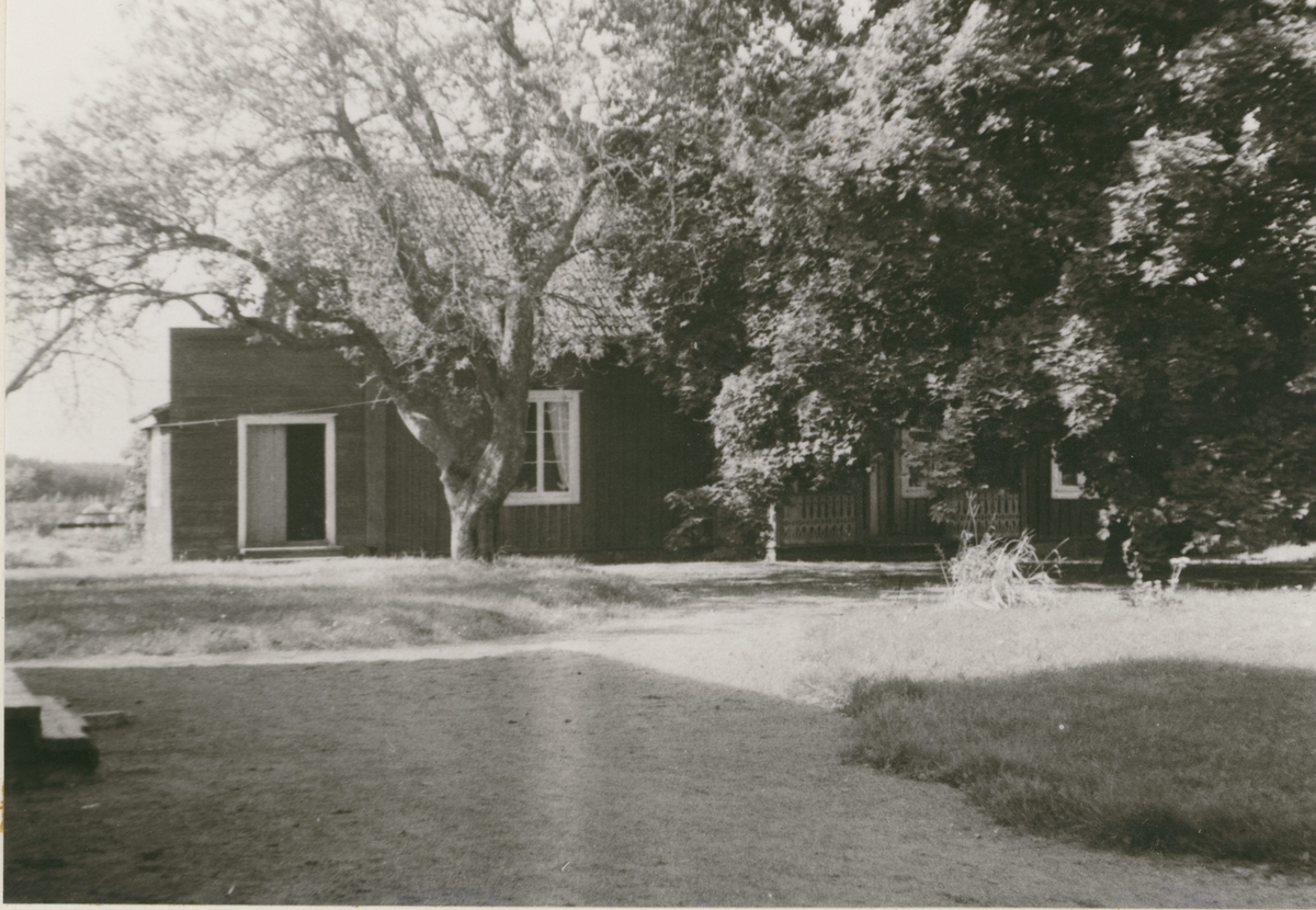 Knuttimrad mangårdsbyggnad, klädd med panel av stående bräder med täcklister. Täckt av tvåkupigt tegel. Rödfärgad med vita dörr- och fönsterfoder. Veranda och utbygge på köksgaveln sekundära.