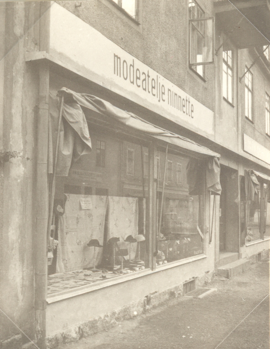 Motiv från Nybro, möjligen från Storgatan. Till vänster syns modeateljé Ninnette.