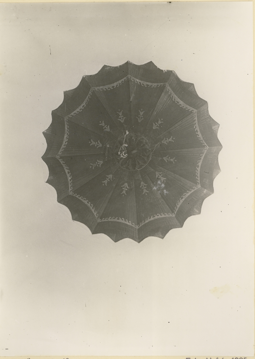 En tryckt pappersrosett i taket på Fredriksbergs herrgårds övervåning, rum två.