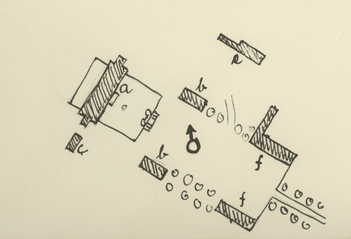 Teckning av den södra flygeln vid Fredriksbergs herrgård:. magasin för vagnsbod.