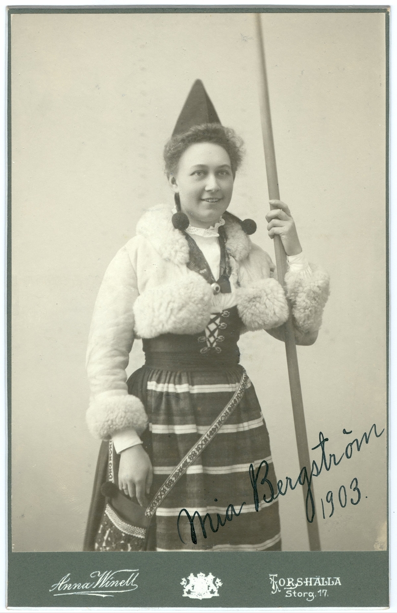 Bild på en kvinna i folkdräkt.