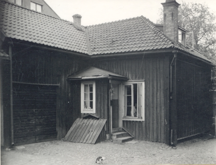 Baksidan på Anders Olofsson Berghs trähus vid Lilla Torget.