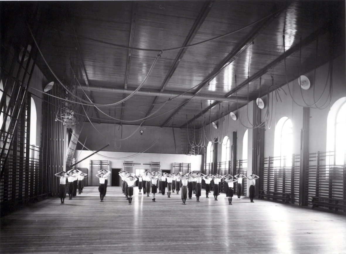 Gymnastiksalen med pågående undervisning, i Kalmar högre allmänna läroverk.