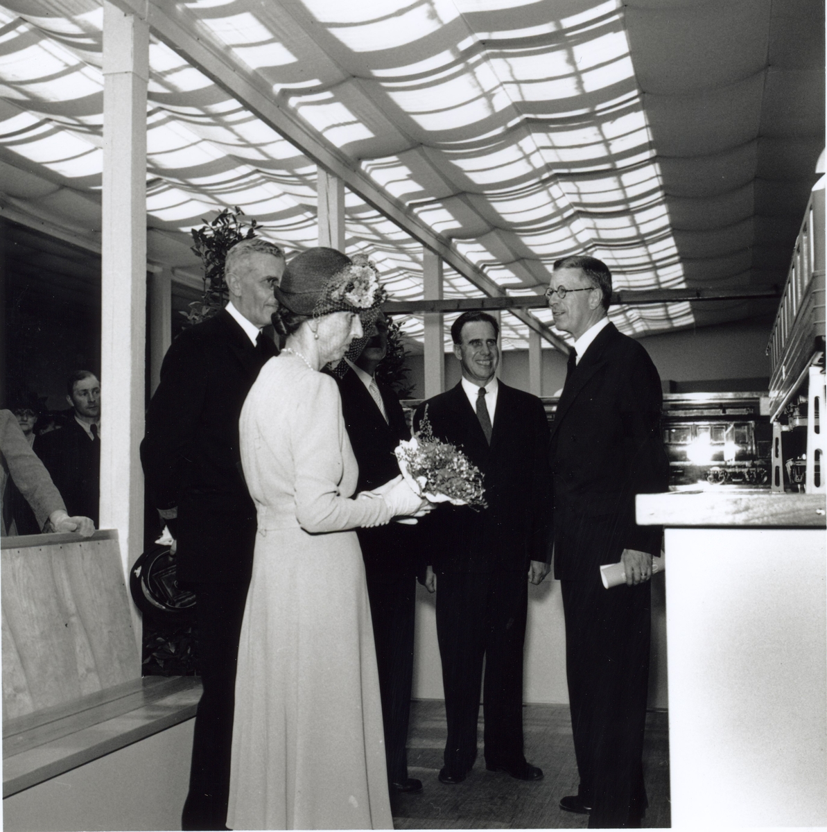 Dåvarande kronprinsen Gustav Adolf med sin hustru vid hantverksmässan i Kalmar 1947.