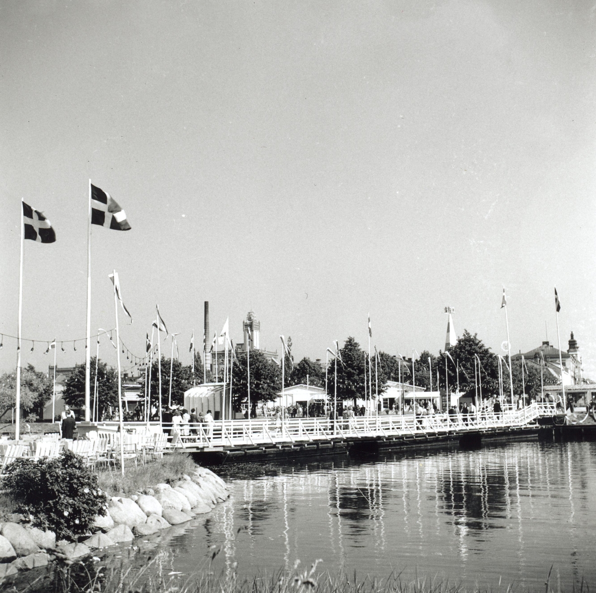 En tillfällig bro byggdes över Fredriksskanskanalen med anledning av hantverksmässan 1947.