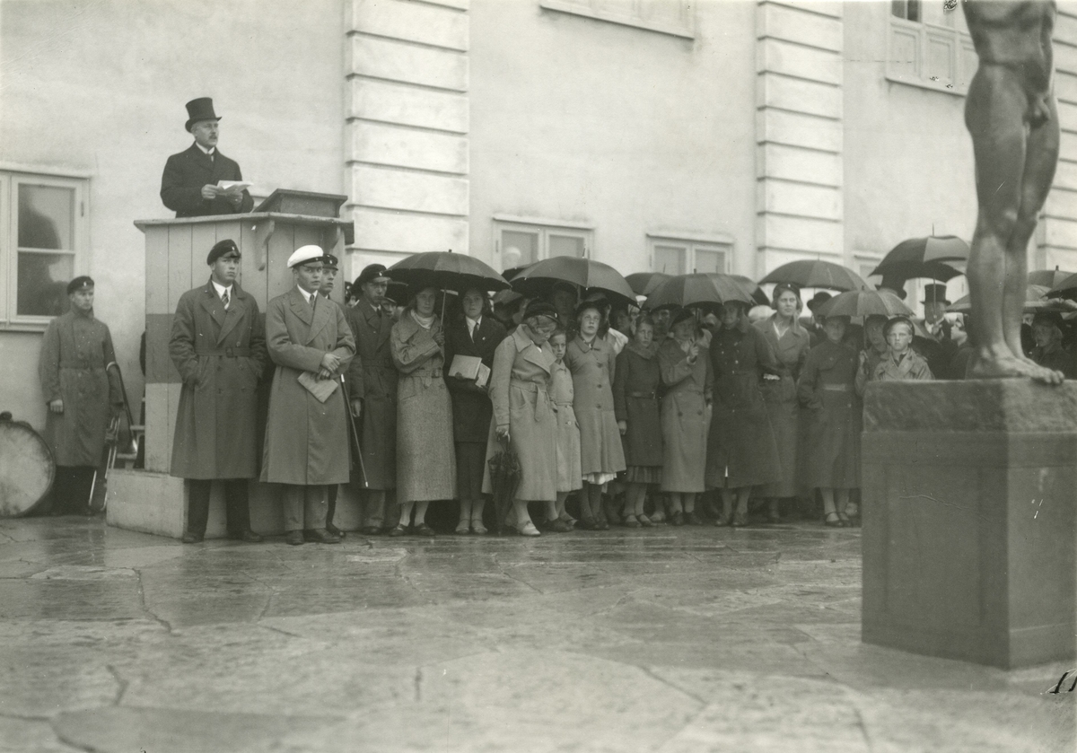 Invigning av Carl Eldhs skulptur Simhopparen 1934.