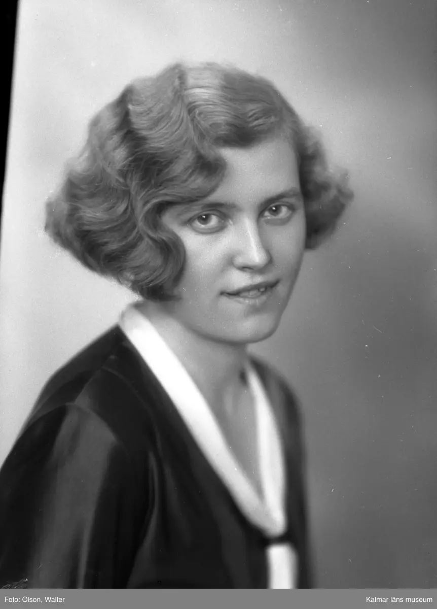 Ateljébild på en kvinna med ondulering. Enligt Walter Olsons journal är bilden beställd av Karin Gardar ifrån Landstinget.