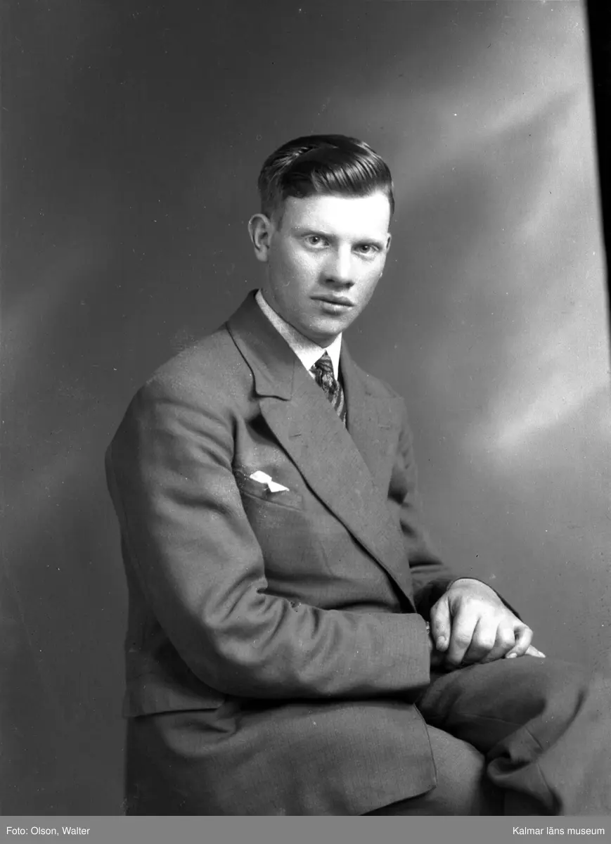 Ateljébild på en man i kostym. Enligt Walter Olsons journal är bilden beställd av Torsten Erlandsson.
