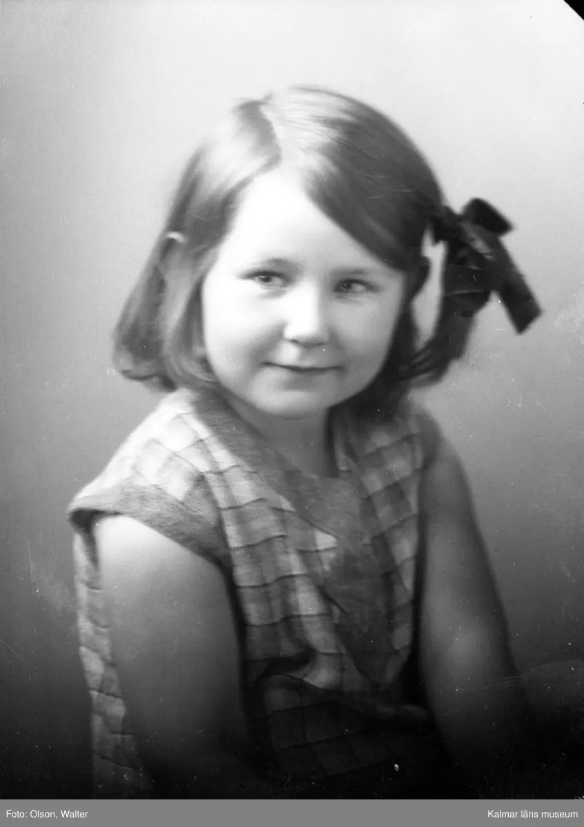 Ateljébild på en flicka i rosett. Enligt Walter Olsons journal är bilden beställd av Birgitta Notlén.