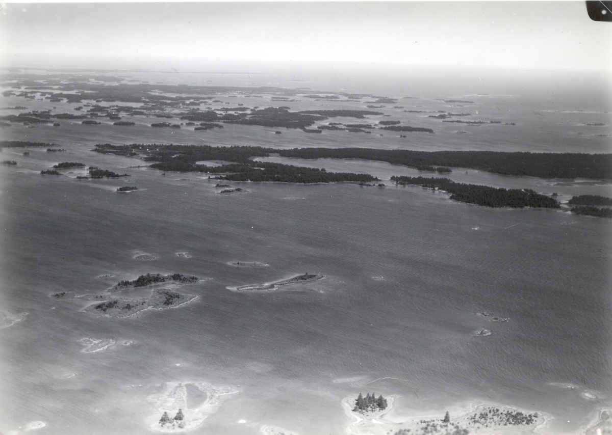 Flygfoto över skärgård utanför Ålems socken, taget 1935.