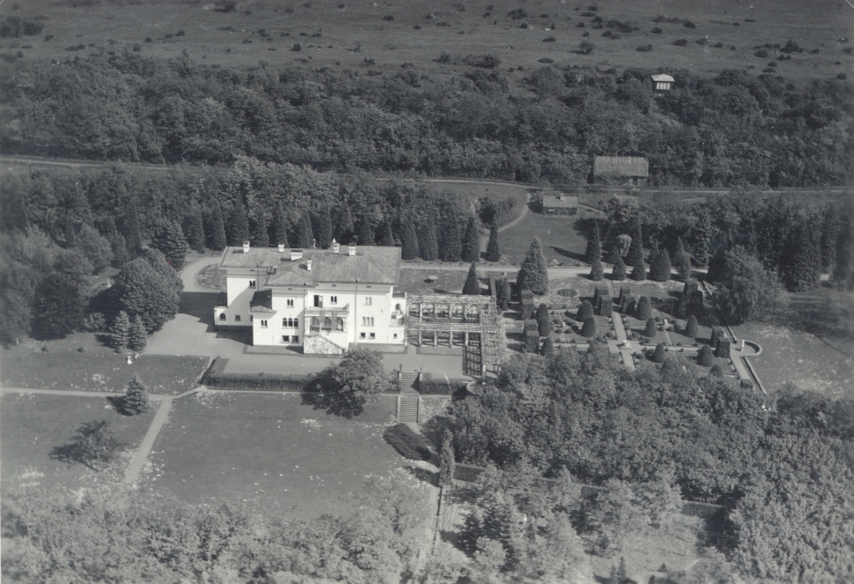 Flygfoto över Solliden, Öland 1935. Drottning Victoria, hustru till Gustav V, lät bygga Solliden då Ölands klimat ansågs nyttigt för hennes klena luftrör. Slottet är inspirerat av hovmedicus Axel Munthes villa San Michele på Capri.