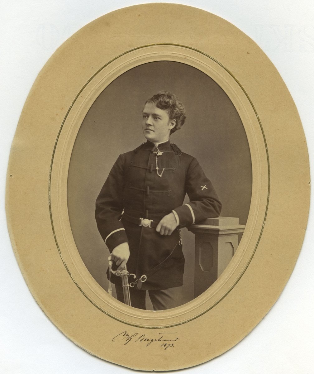 Bergstrand, Hj. Skarpskytt, ihållandes en värja.