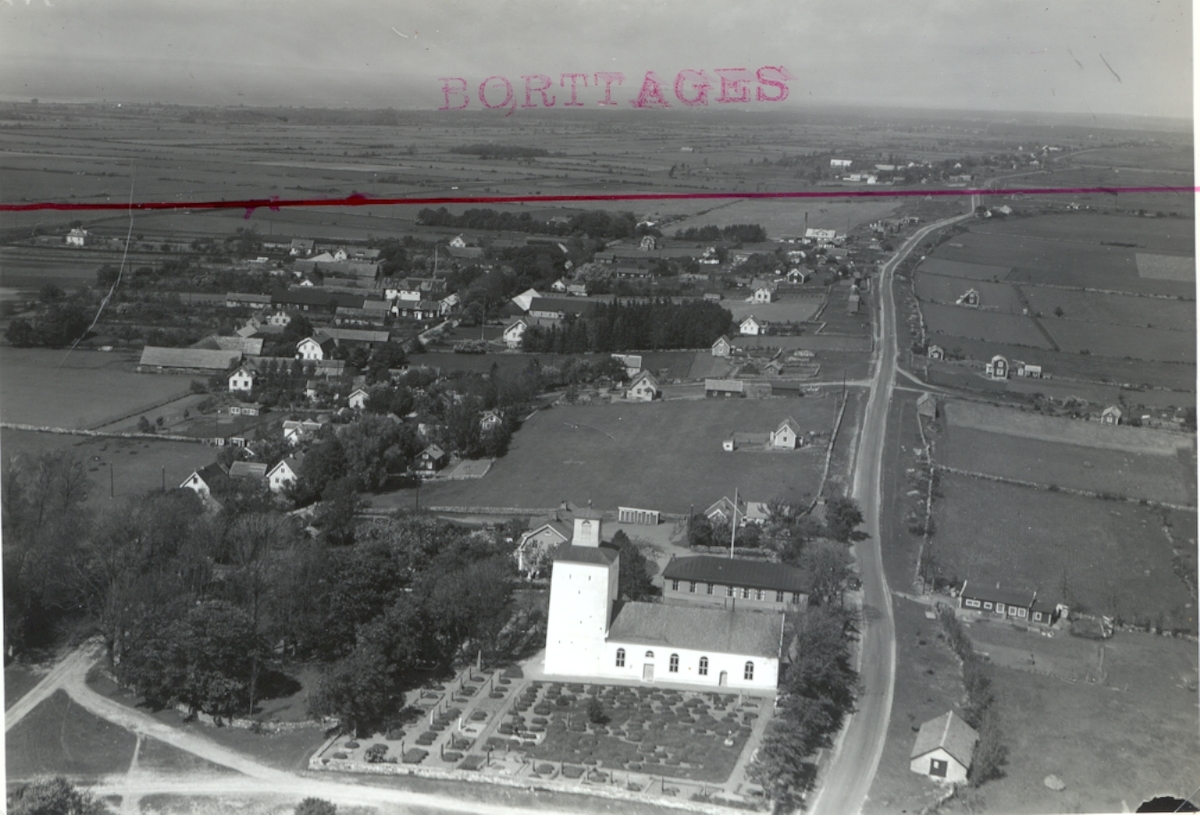 Flygfoto över Vickleby kyrka.