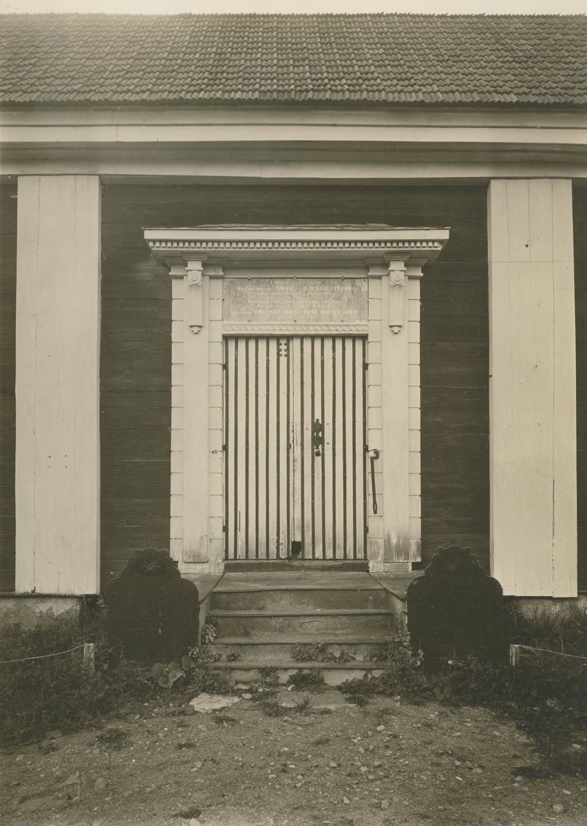 Trappan. Trappsteg av järnhällar. Två stående poster av gjutjärn med texten "Dyrka Gud som Gifver Dig Bröd och Allt". (T.v.) samt "Denna trappa är Hungroga Gäster Helgad" (T.h.). Över dörren inskriftstavla, förmälande om den Bäckerström - Hoppenstedtska donationen. Byggnaden färdigställd 1803.