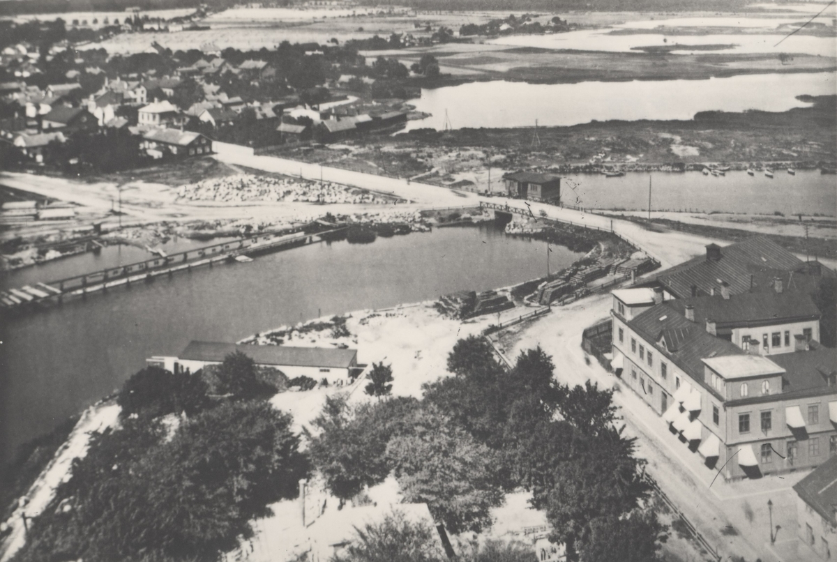 Korten tagna från Vattentornet cirka 1900 med Malmbron och Malmfjärden i bakgrunden.