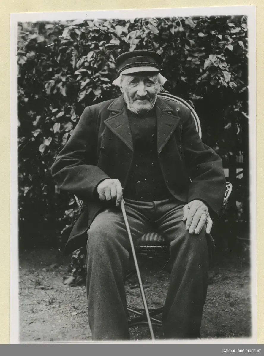 Oscar Hullgrens morfar, Per Persson, bodde i Gransmåla i Mörlunda, nära Bohult. Död 92 år gammal. Fotot är taget i Pataholm dit han flyttat till mågen och dottern.