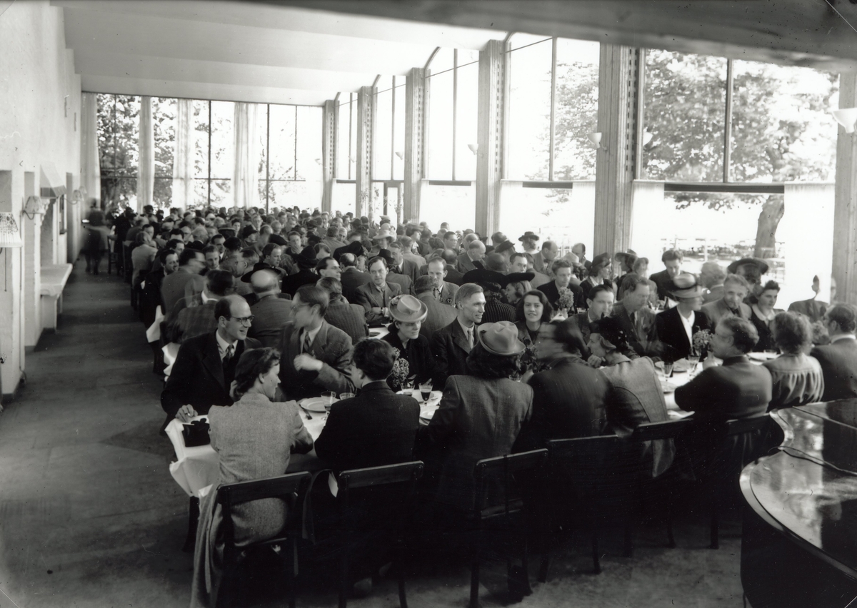 Matgäster i matsalen på restaurang Byttan. Av sittningen att döma en större beställning.