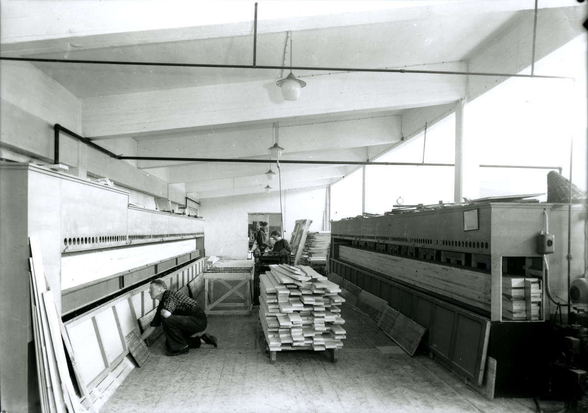Arbete i Kährs fabriker. Plank för golvtillverkning.