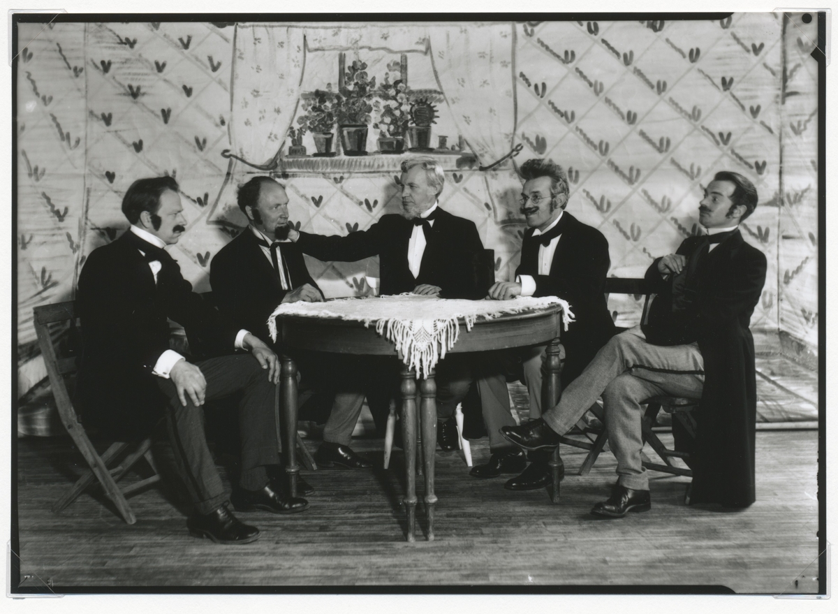 Folkskoleseminariet. Teater vid vårfest. Mannen längst till höger är folkskollärare Ossian Häggfors. Lärarnas buskisteatergrupp.