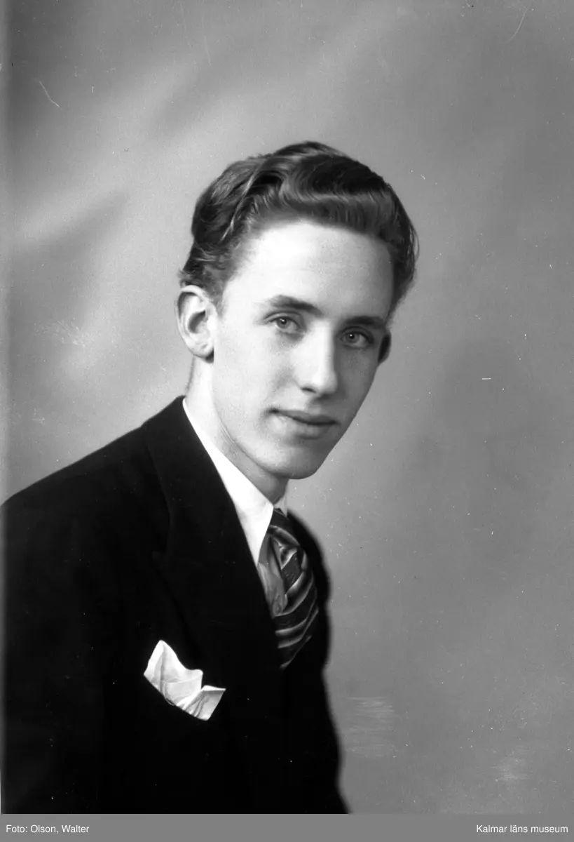 Ateljébild på en man i kavaj. Enligt Walter Olsons journal är bilden beställd av herr Nils Nyström.
