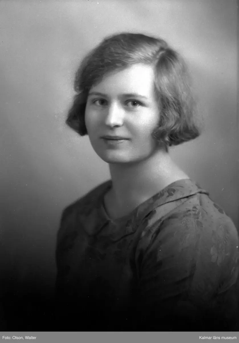 Ateljébild på en kvinna i blus. Enligt Walter Olsons journal är bilden beställd av fröken Agnes Johansson ifrån Haraldsmåla.