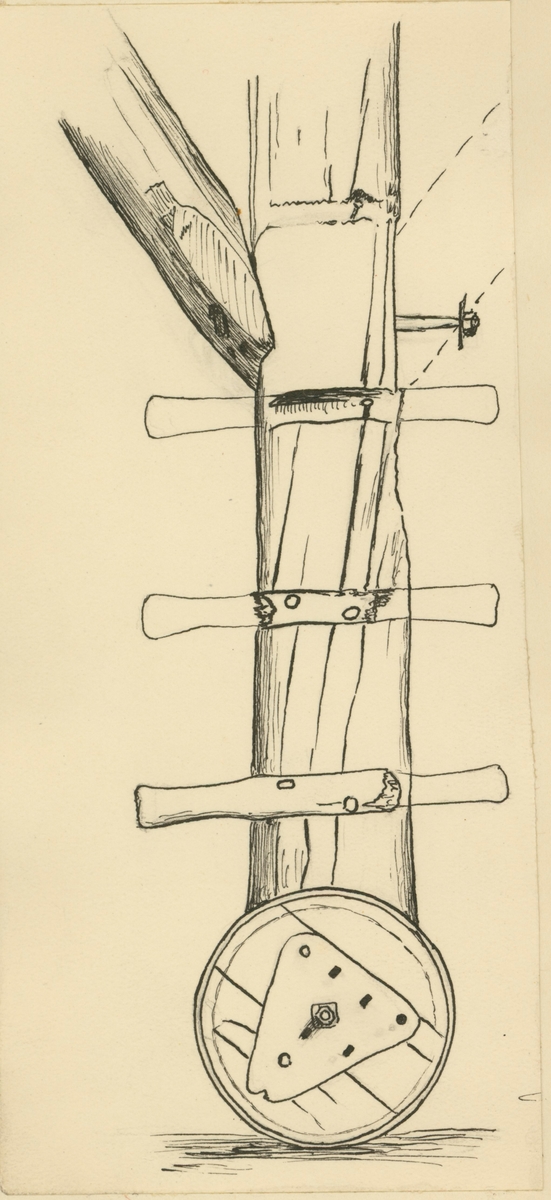 Skiss av detalj av Sveriges enda bevarade vinddrivna skurverk.