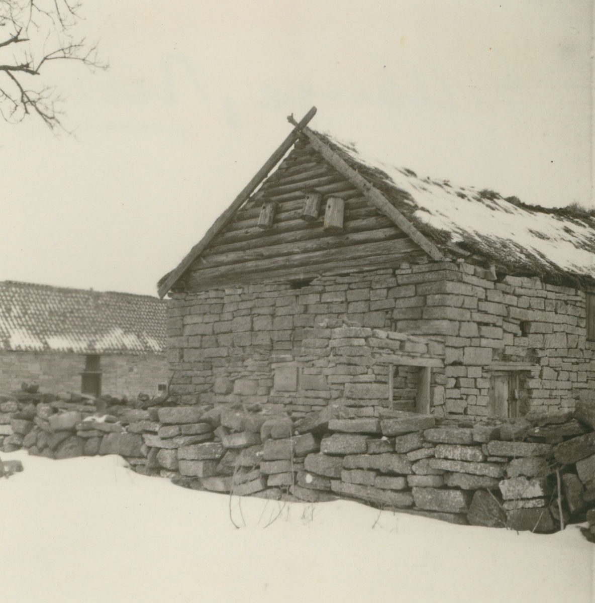 Ekonomibyggnad uppförd i kalksten i Gillberga.