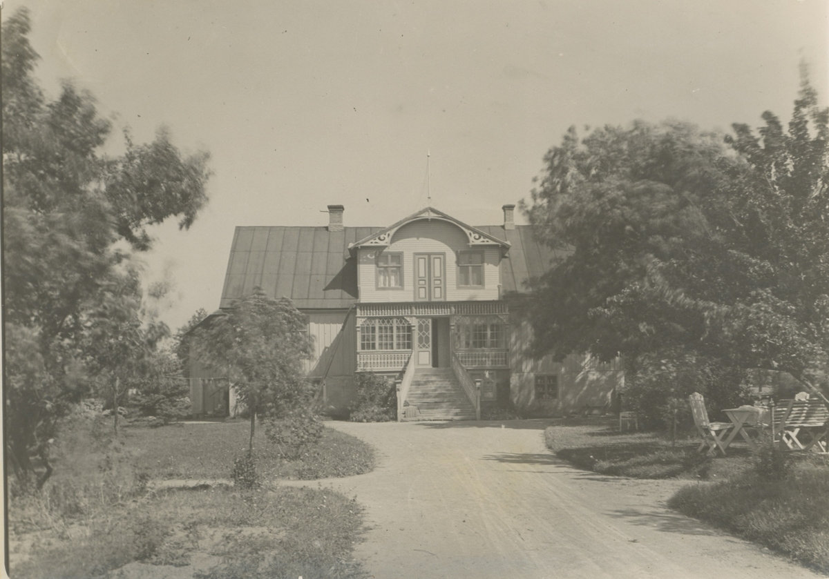 Gästgivaregårdens huvudbyggnad. Hög källarvåning av sten, övervåning av trä. Veranda och frontespis tillkom senare. Vid ena gaveln kökskvist. Nu plåttak. Planindelning sexdelad. I källarvåningen kök och mot vägen handelsbod. Numera finnes även ett kök i övre våningen.