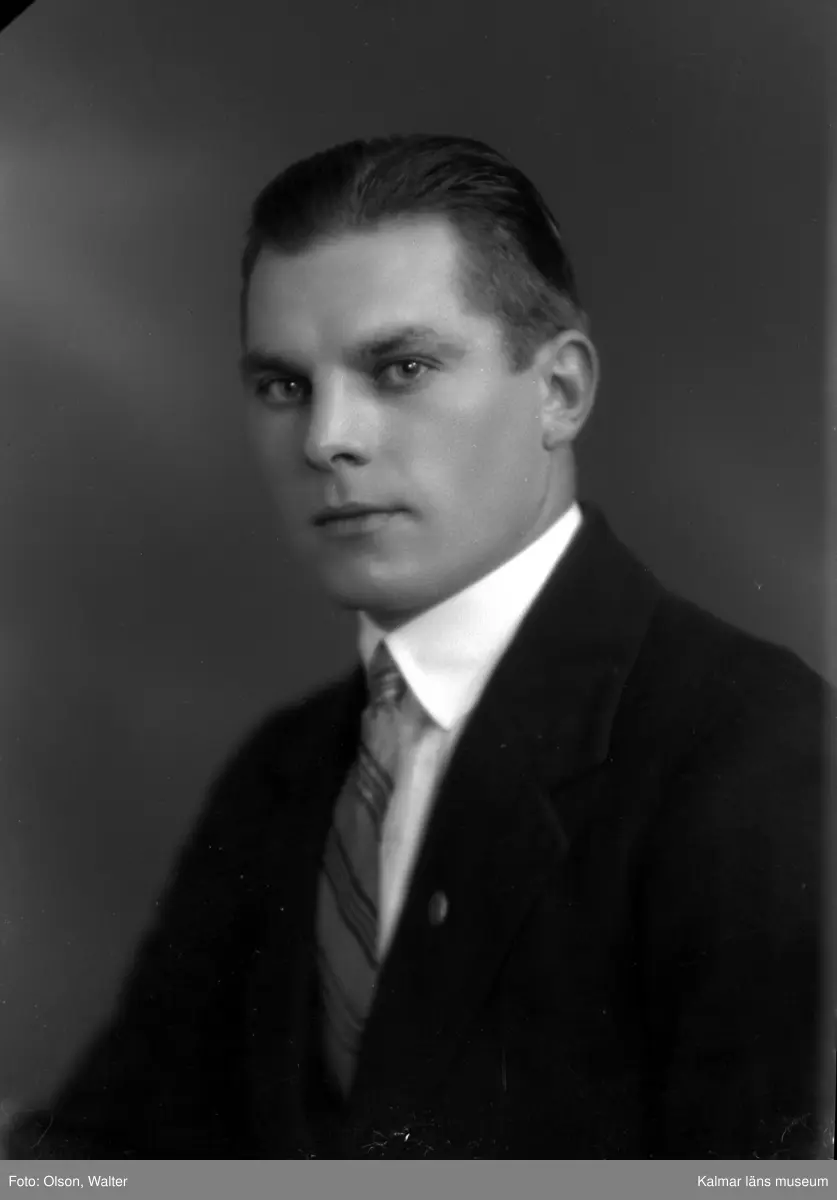 Ateljébild på en man i kostym. Beställare till bilden: Gunnar Franzén ifrån Christinelund vid Vassmolösa.