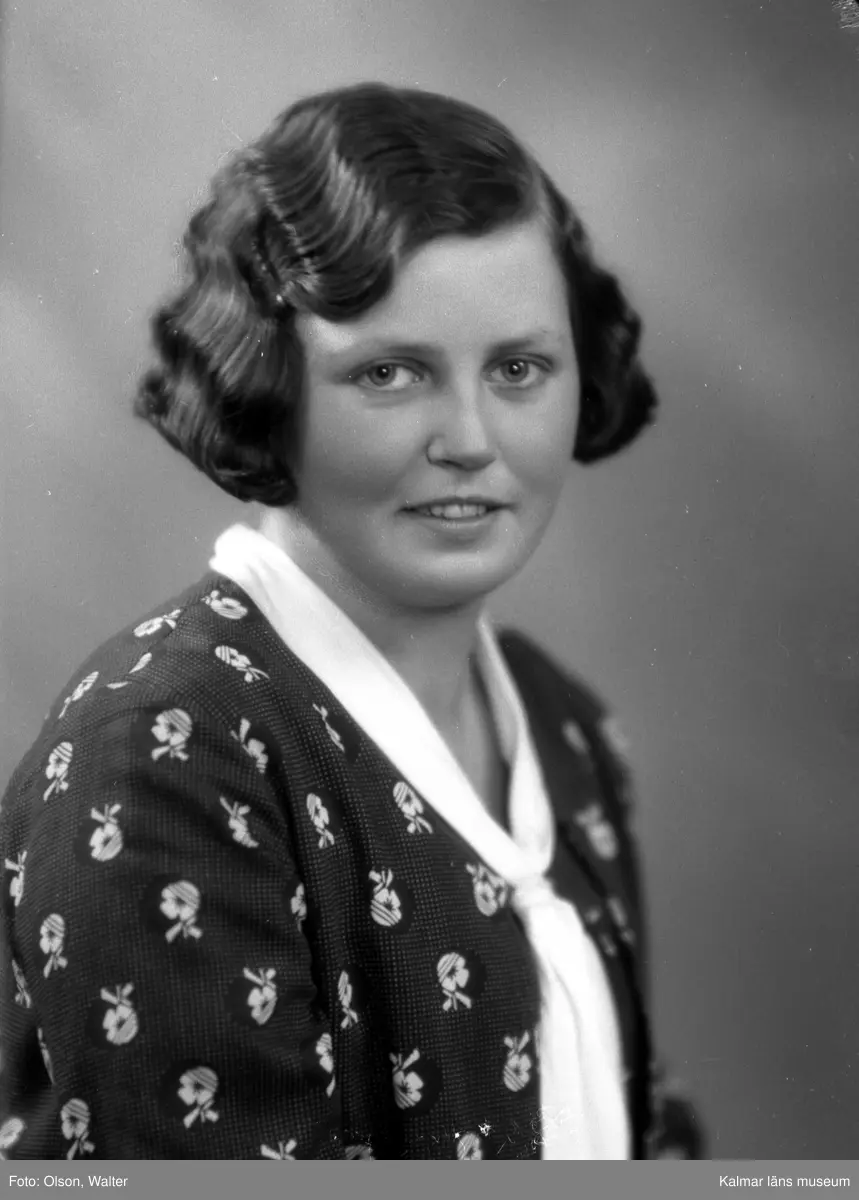 Ateljébild på en kvinna med scarf. Enligt Walter Olsons journal är bilden beställd av fröken Agda Johansson.