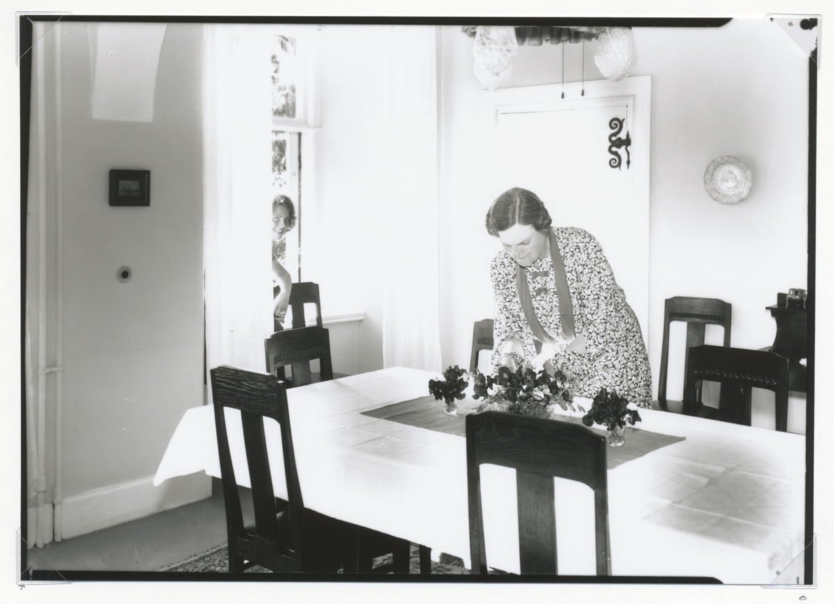 Fru Ester Lidén, maka till landshövding Arvid Lidén. I fönstret skymtar dottern.