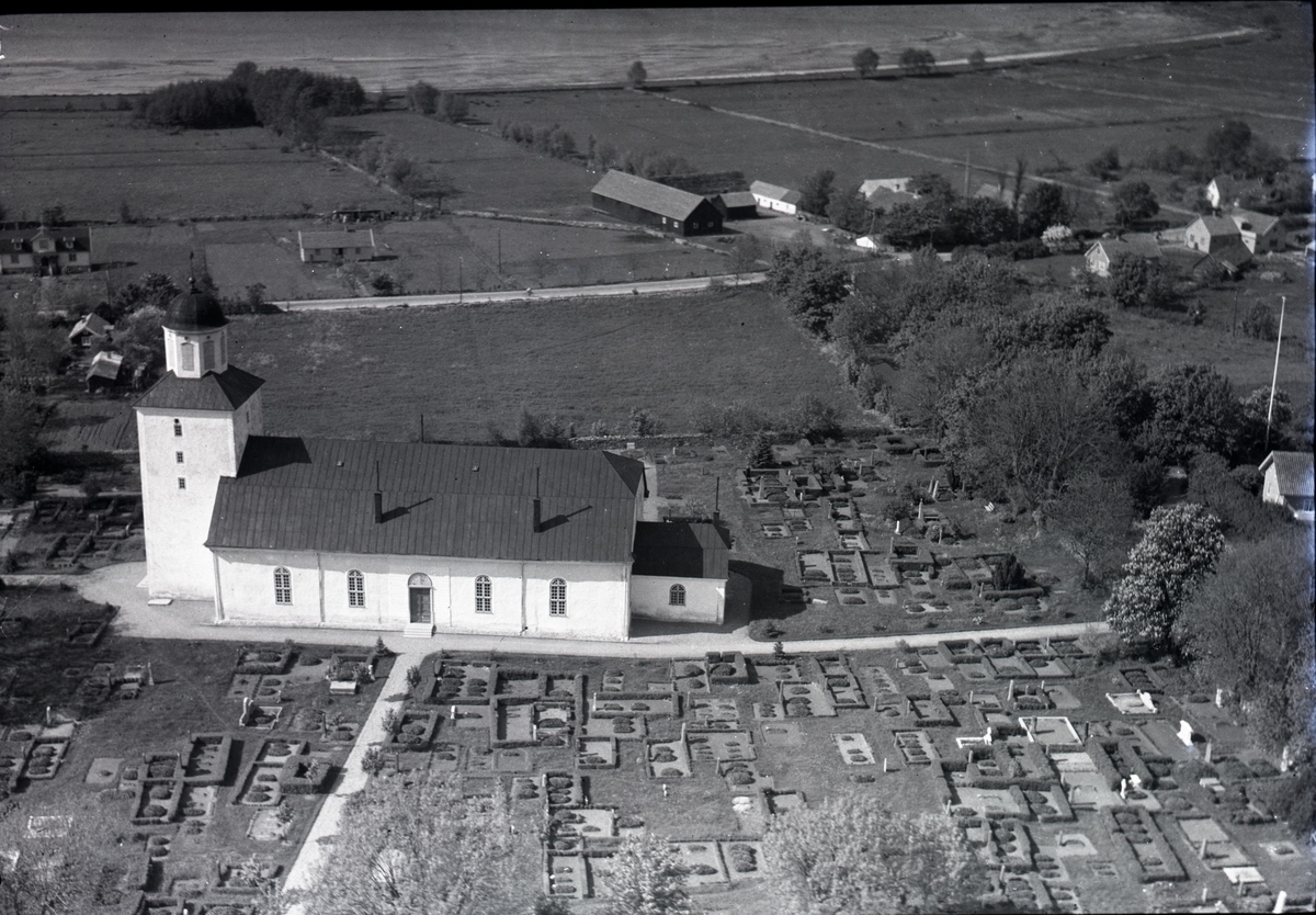 Flygfoto över Köpingsviks kyrka på Öland.