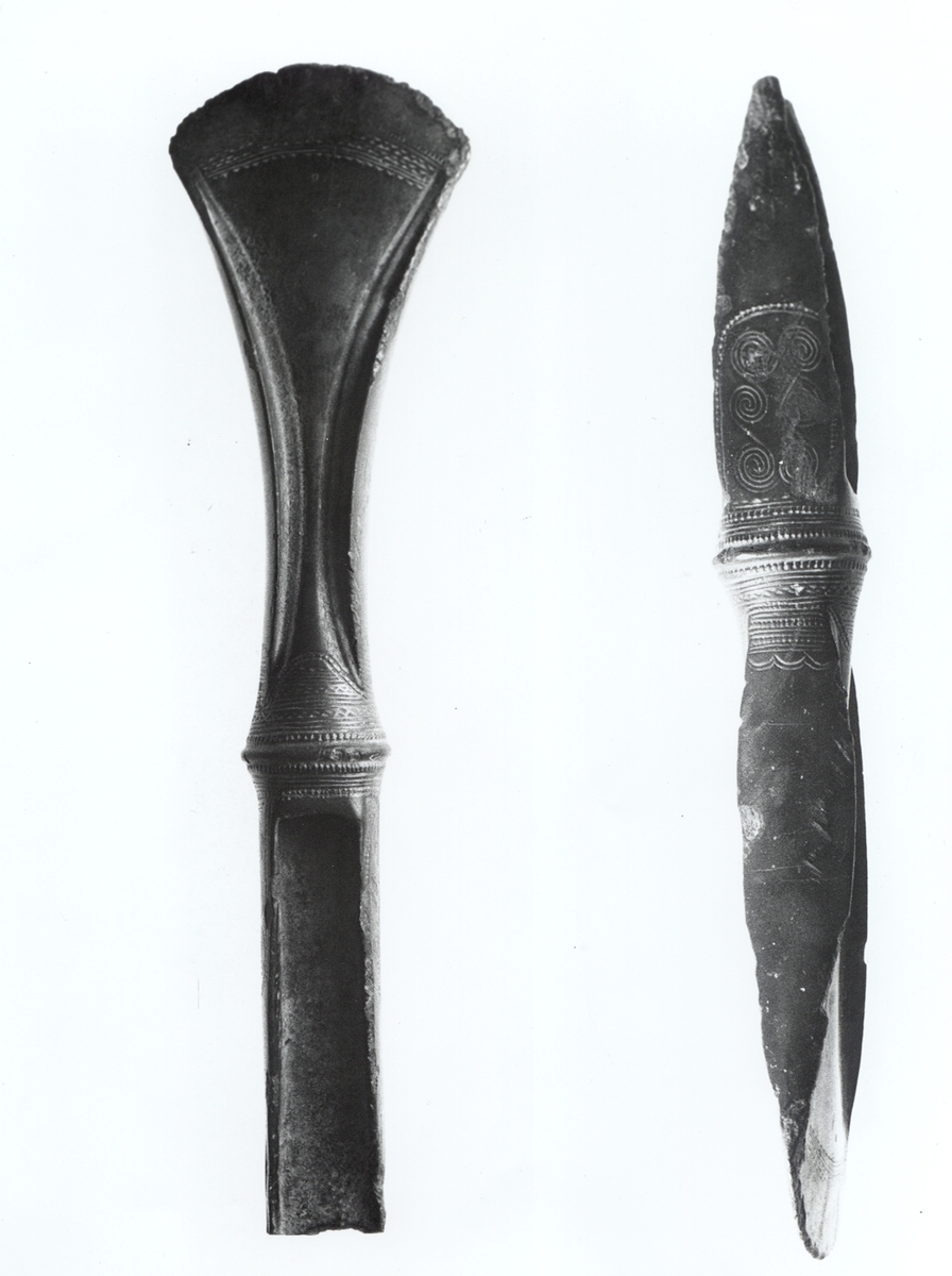 Avsatsyxa av brons. Längd 20,5 cm, bredd 5,3 cm.