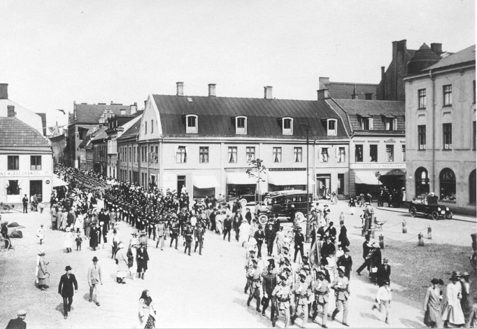 Kungliga Kalmar regementes 300-årsjubileum 1923. Regementet var aldrig förlagt till Kalmar utan hade hela sin existens sin huvudsakliga övningsplats på Hultsfreds slätt. I samband med värnpliktsreformen i början av 1900-talet fanns det dock planer på att flytta det till Kalmar men förlades i stället till Eksjö där det 1926 slogs samman med Jönköpings regemente. Numera förs fanan av Eksjö garnison.