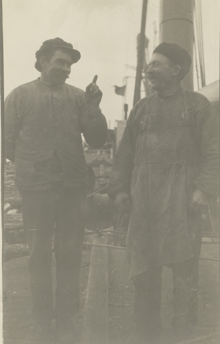 Två arbetare i samspråk någonstans i hamnen i Kalmar.