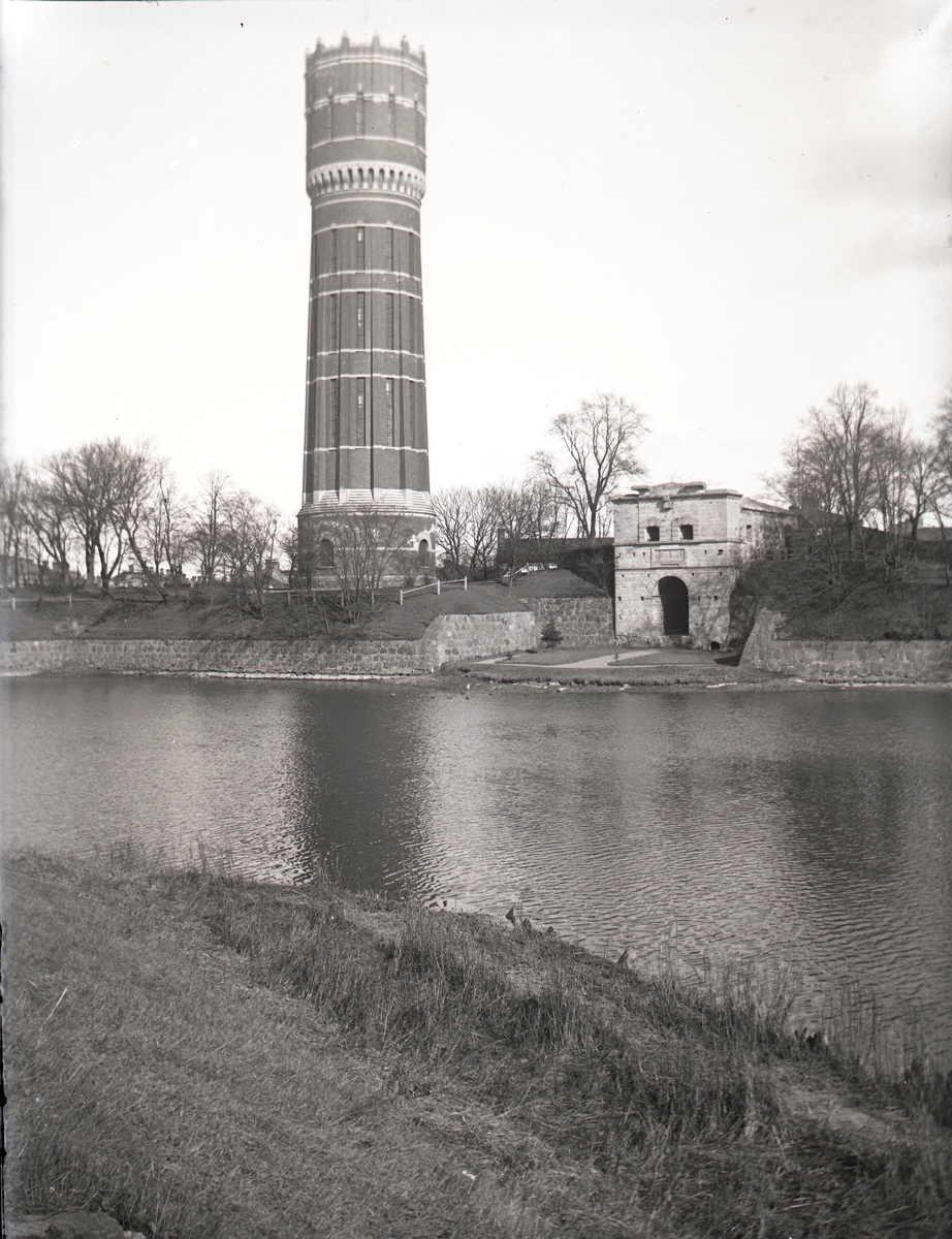 Systraströmmen i Kalmar med Västerport. I bakgrunden syns vattentornet.