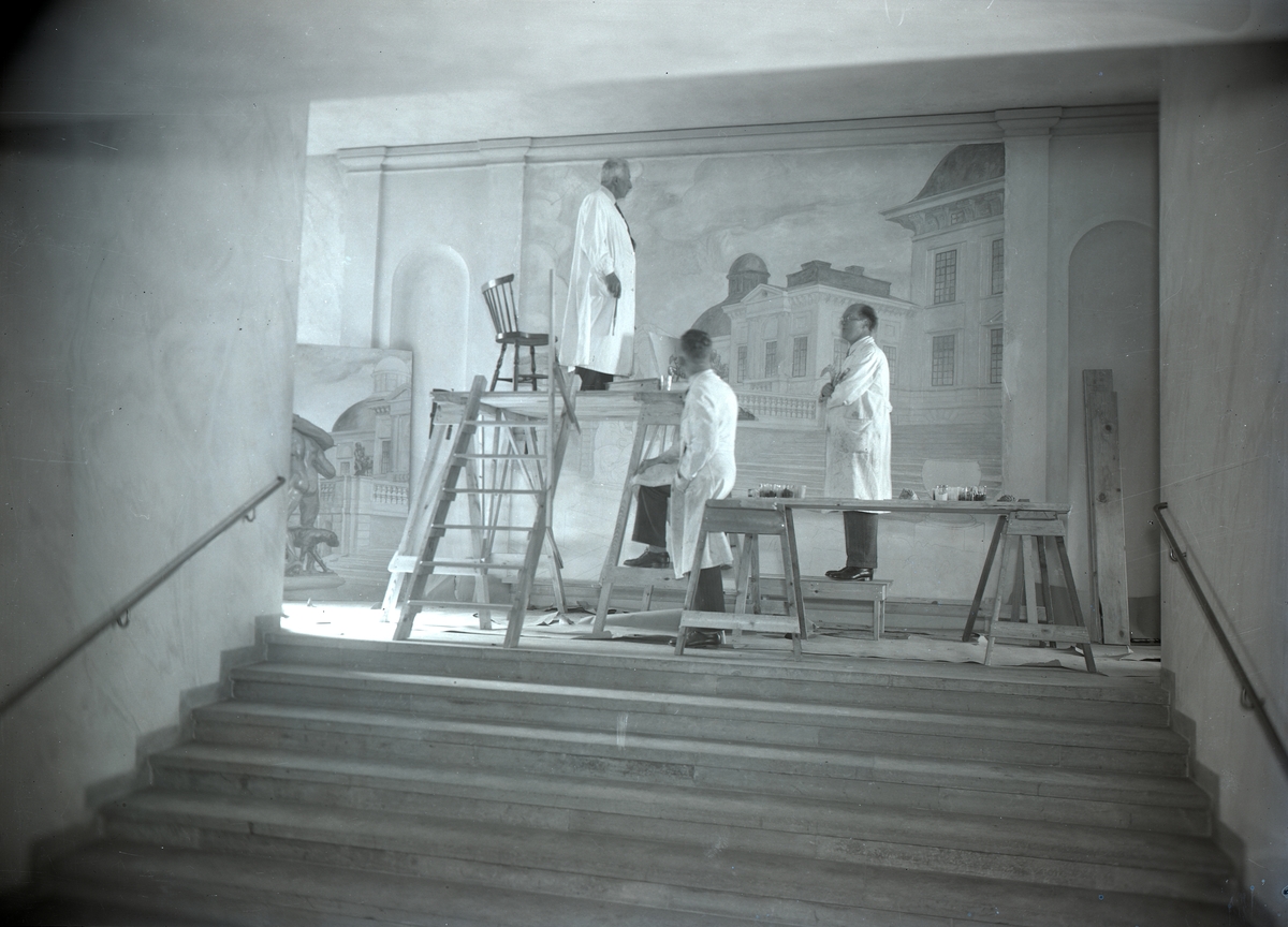 Prins Eugen målar trapphuset i Stagneliusskolan.