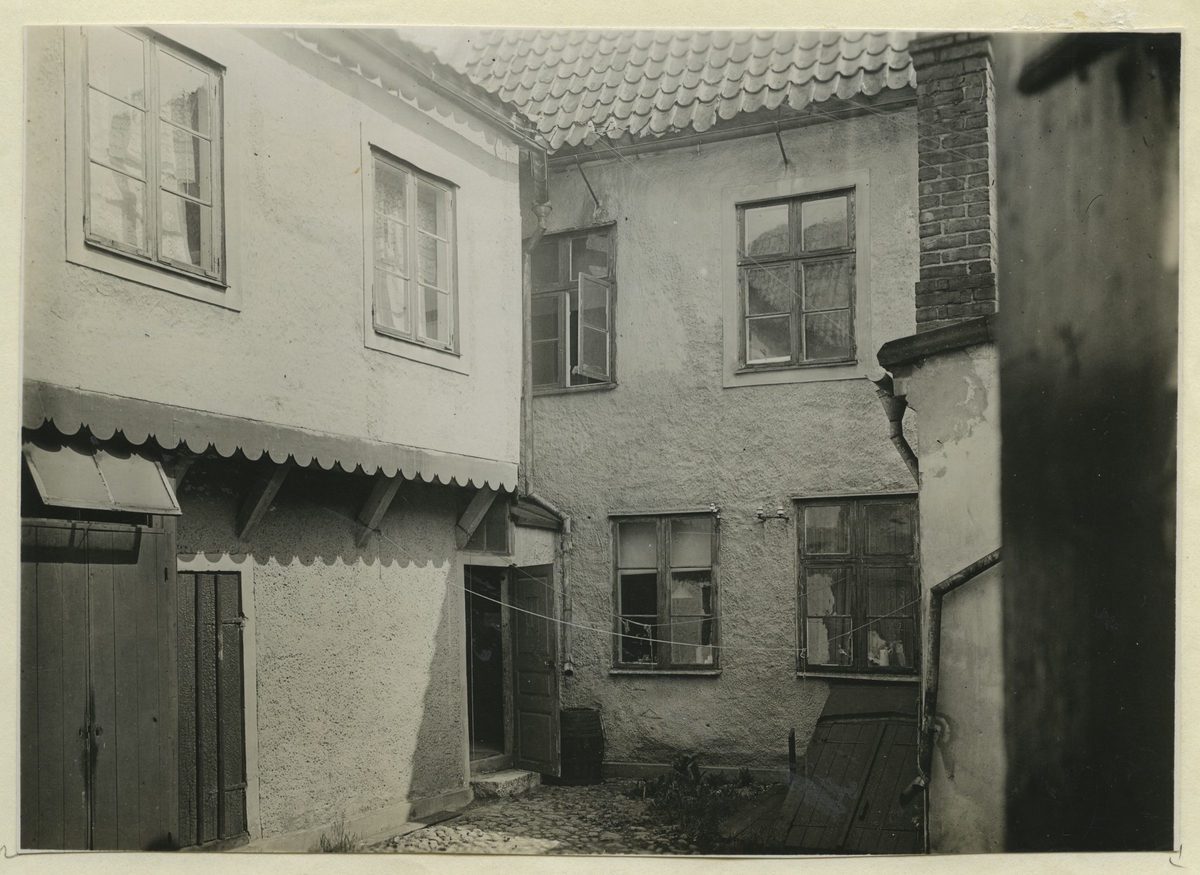 Korsvirkesbyggnader med fackverket överputsat. Byggt i slutet av 1700-talet.