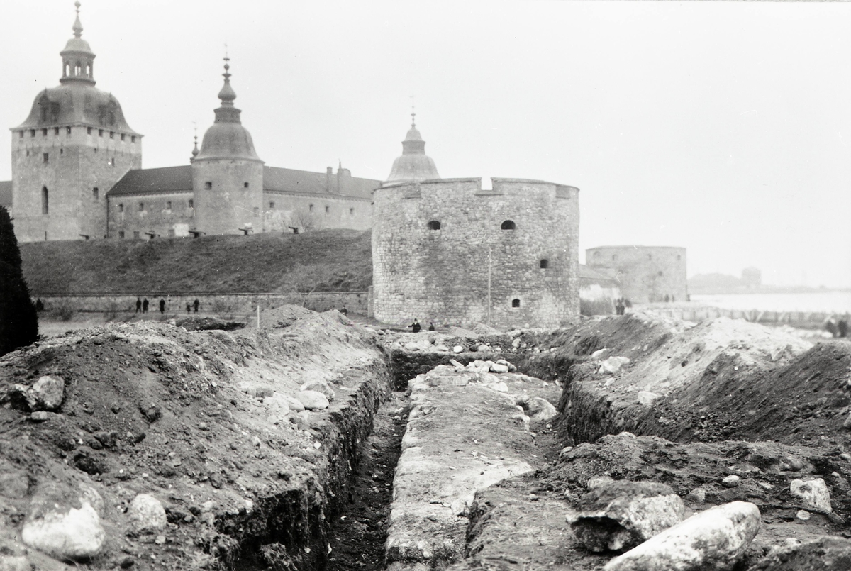 Utgrävning av mur mot Södra kyrkogården vid slottet.