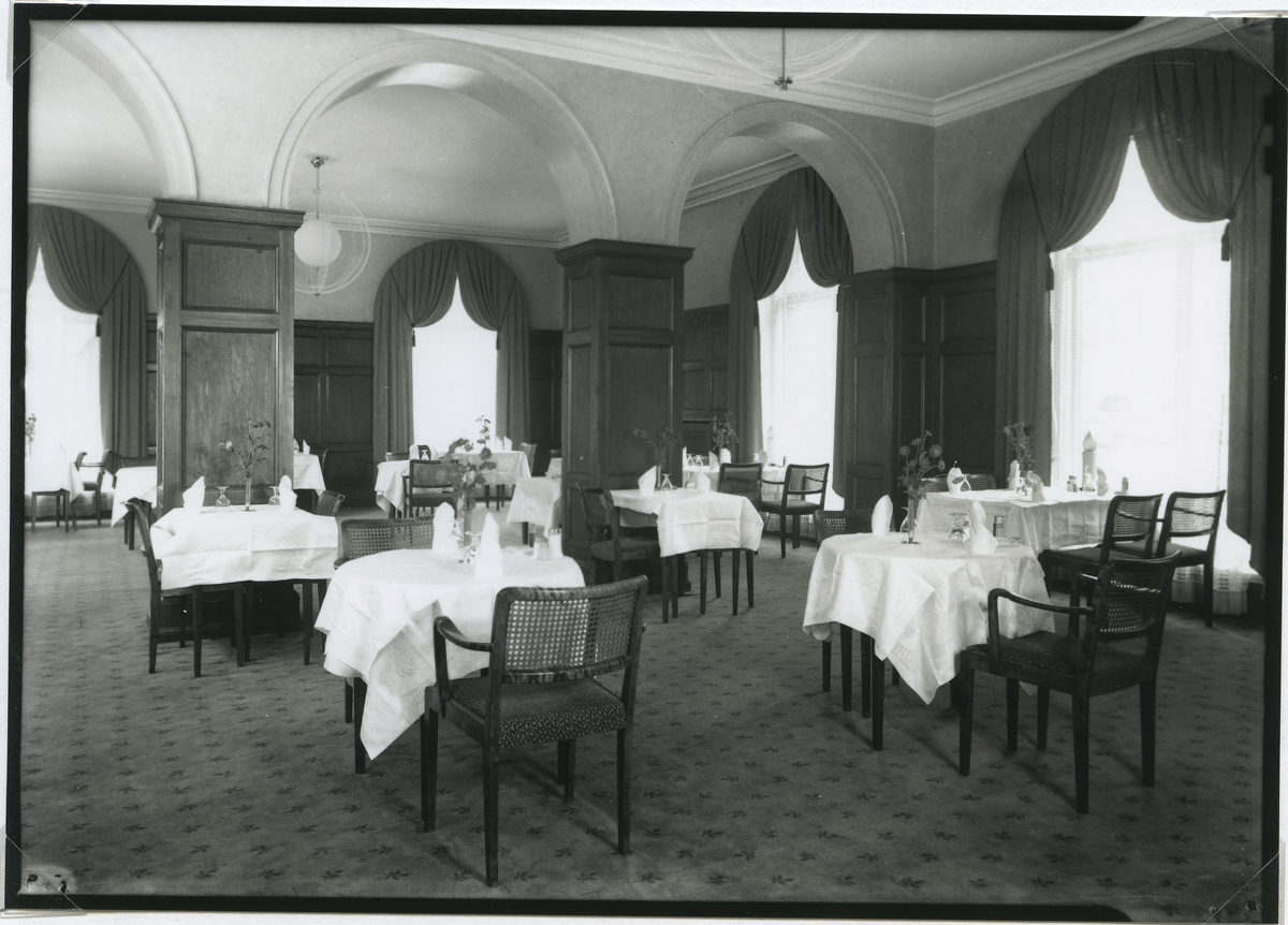 Matsal, troligen Stadshotellet. Fotot beställt av fru Rynning.