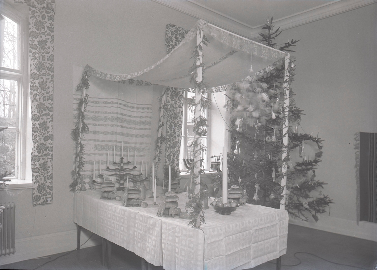 Husmoderföreningens julmässa. Husmoderföreningar har i huvudsak som uppgift att genom direkta och indirekta åtgärder, genom möten och föredrag, genom musik, sång och annan god förströelse höja hemlivets nivå och skapa en bättre grundval för hemmets bestånd.