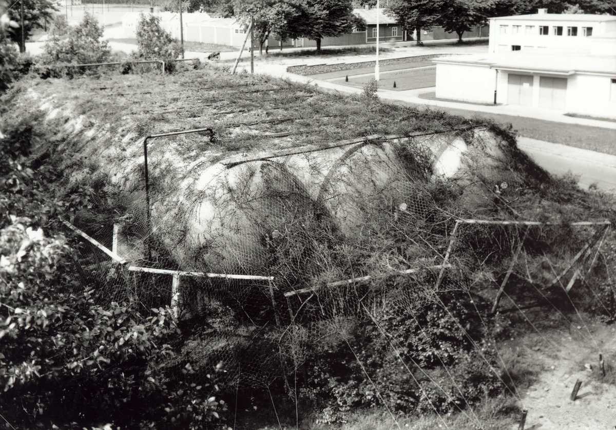 Krigskamouflage vid gasverket på Södra Vägen. I bakgrunden ses Folkets park.