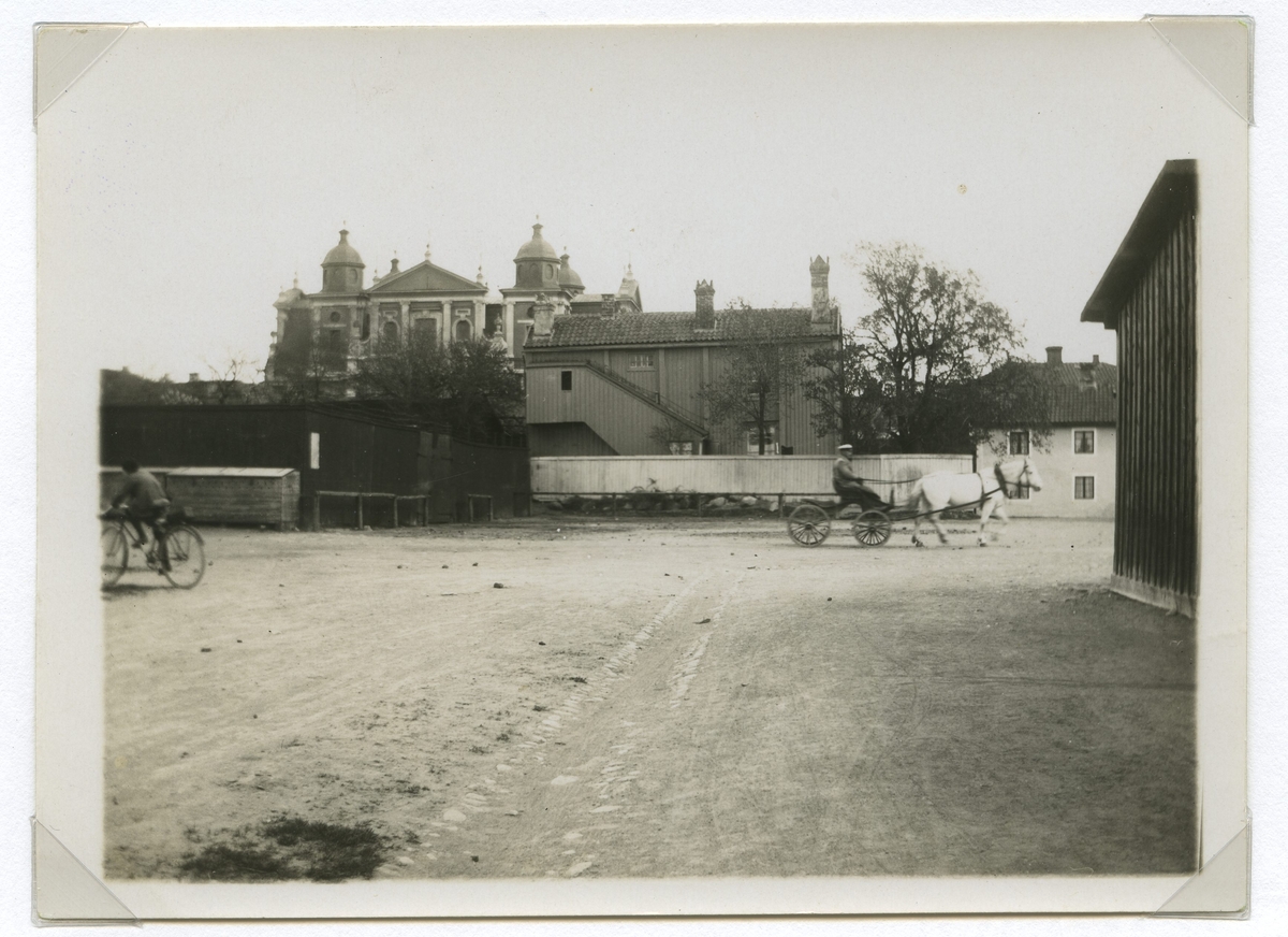 Motiv från Norra Vallgatan i kvarteret Muren innan Nils Carlgrens s k pensionärsbyggnader uppfördes.