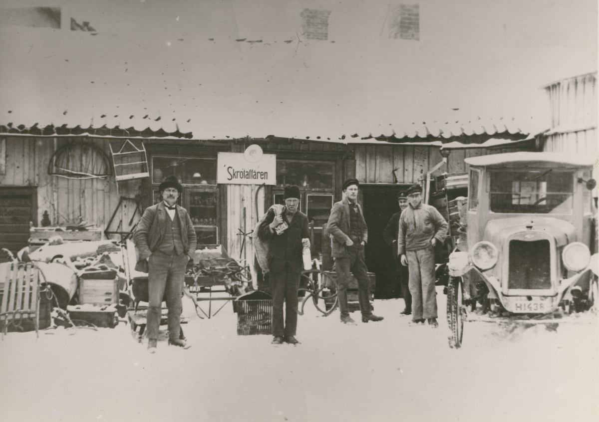 Foto 1928 med skrothandlare K.G.Johansson t.v . I Mitten en känd lumpsamlare kallad "Bergagubben".