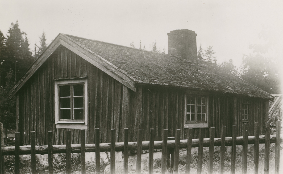 Stuga, bebodd av en gammal sjöman, som var döv och ej uppgav sitt namn. Längd omkring 7,5m. Bredd omkring 4,5 m. Foto från nordost.
