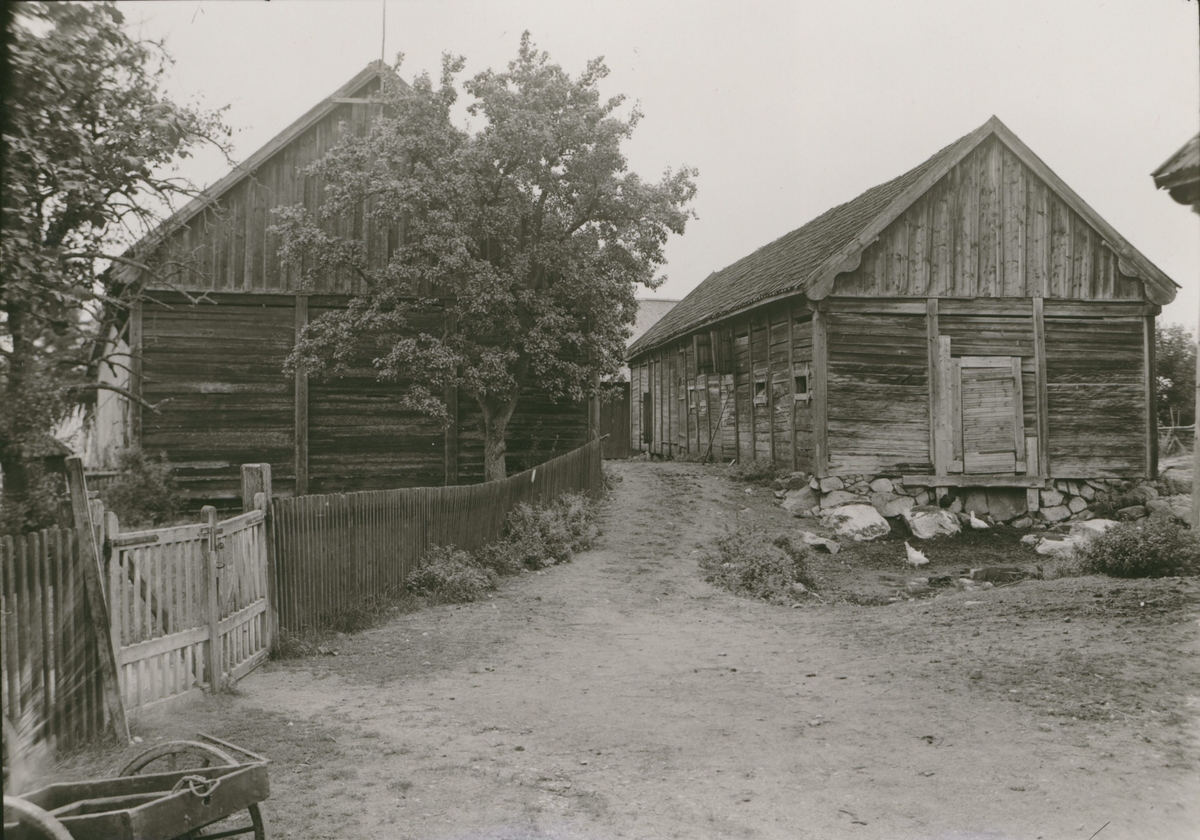 Loge och ladugårdslänga. Ca 8,5 x 21m och ca 6,5x29m. resp. Sedda från norr. Ägare: Hulda Svensson, Oskarshamn. Brukare: Rikard Jonsson.