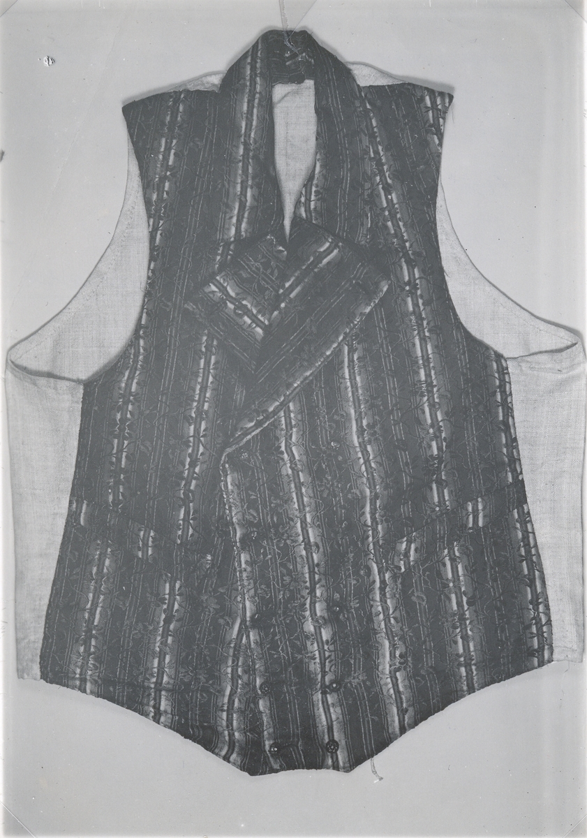 Väst buren av Hemmansägaren P S Andersson i Hallmare vid konfirmationen i Loftahammars kyrka år 1850. Fru Gerda Pettersson, Hallmare.